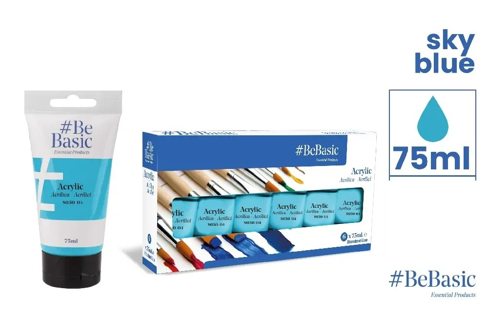 Culori acrilice BeBasic Satin 75ML, albastru deschis S050-04 – o nuanță delicată și răcoritoare, ideală pentru a adăuga luminozitate și senzualitate creațiilor tale artistice!