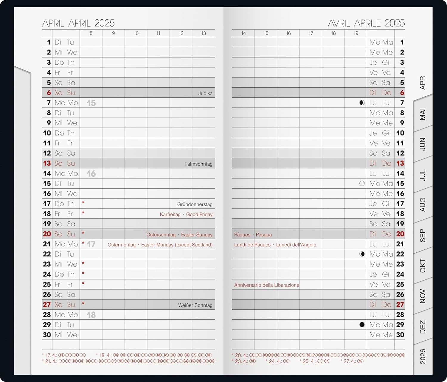 Etichete: culoare argintie, Agenda lunar, Dimensiune 9 x 15 cm, Anul 2025, Structură orară 8-19, Încărcătură interschimbabilă, 4 limbi, Registru de adrese, coperta din plastic