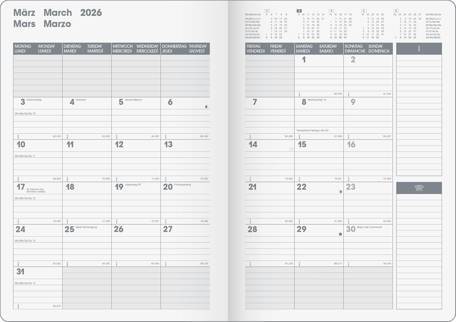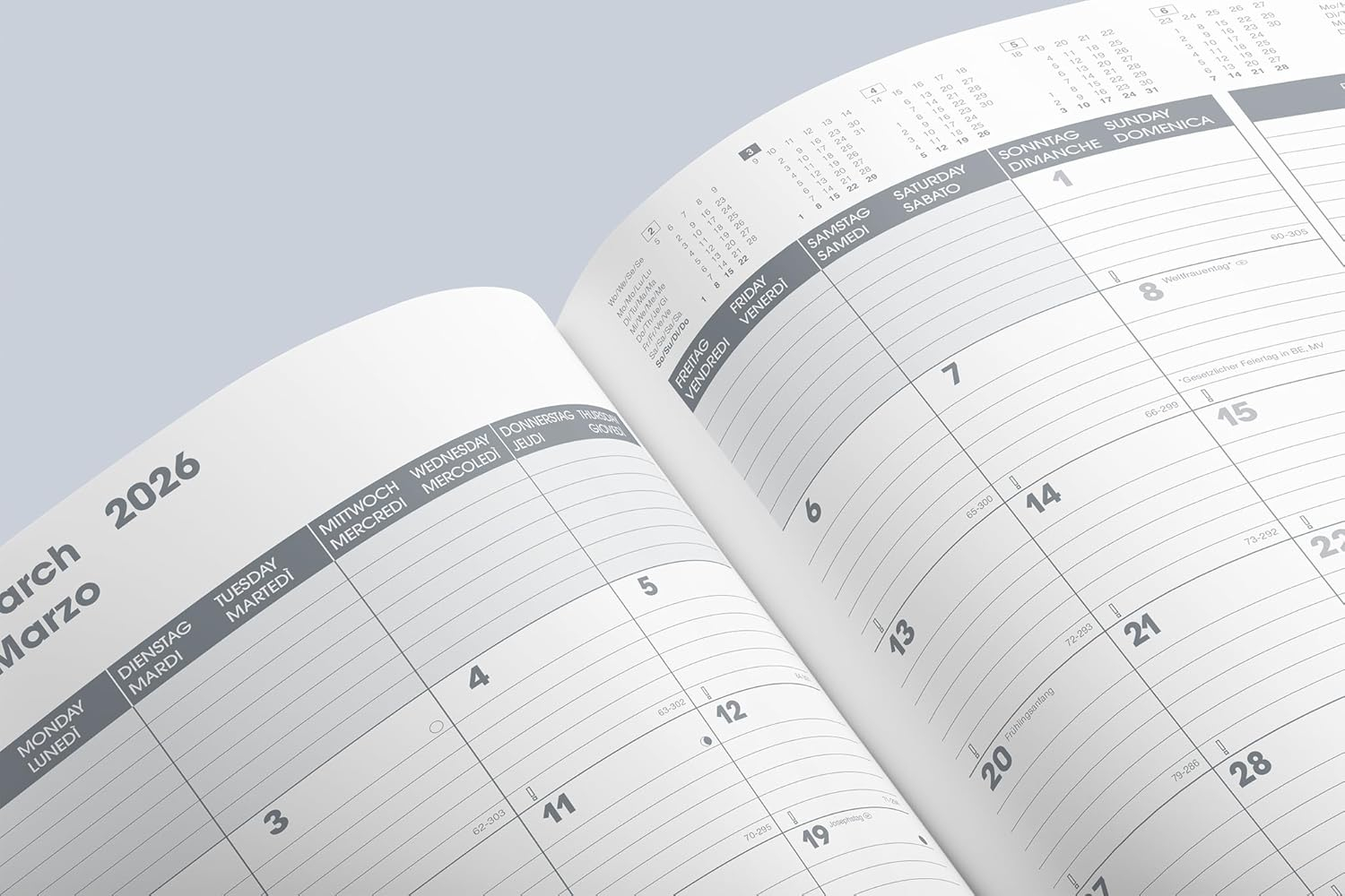 Agenda Brunnen SlimLine nu oferă doar spațiu de planificare, ci și resurse utile pentru organizare: