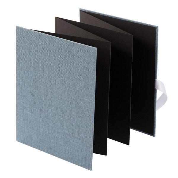 Goldbuch Leporello Summertime în culoare gri cu copertă din material textil și fundă oferă o modalitate elegantă de a păstra și expune până la 10 fotografii de 13x18 cm, în format compact de 15,5 x 19 cm.
