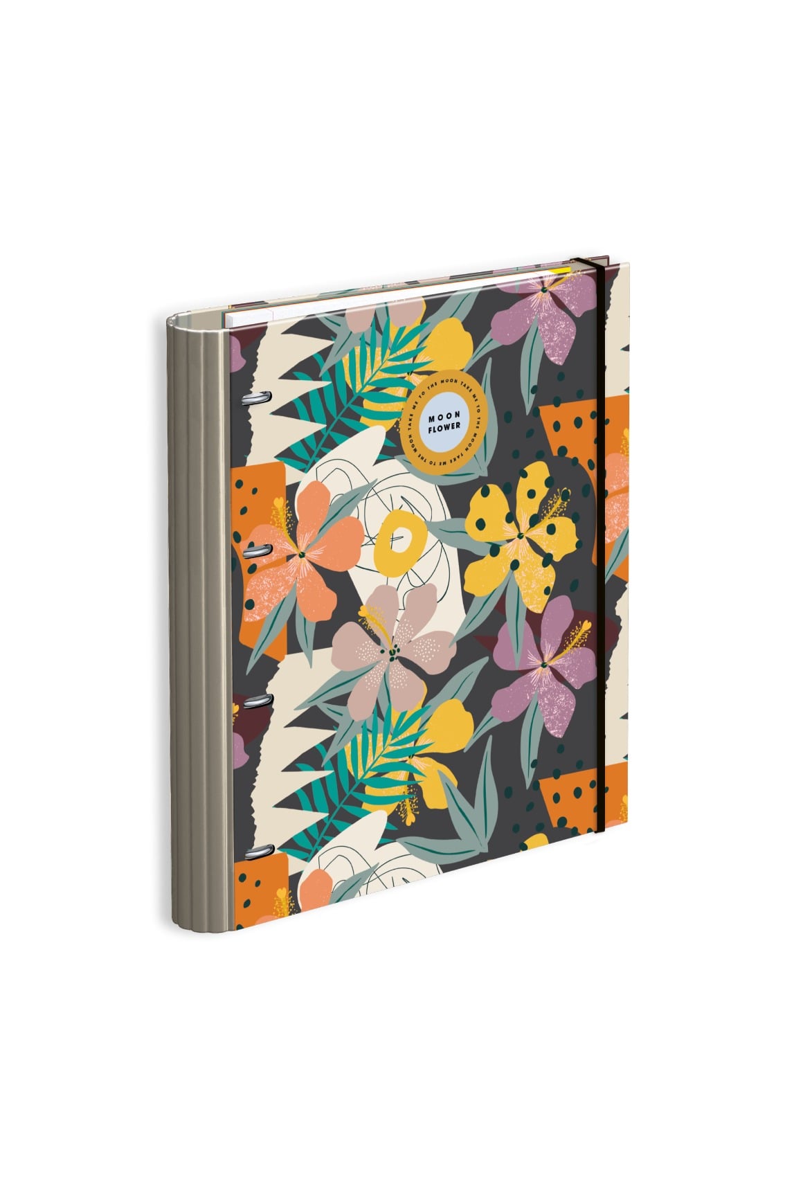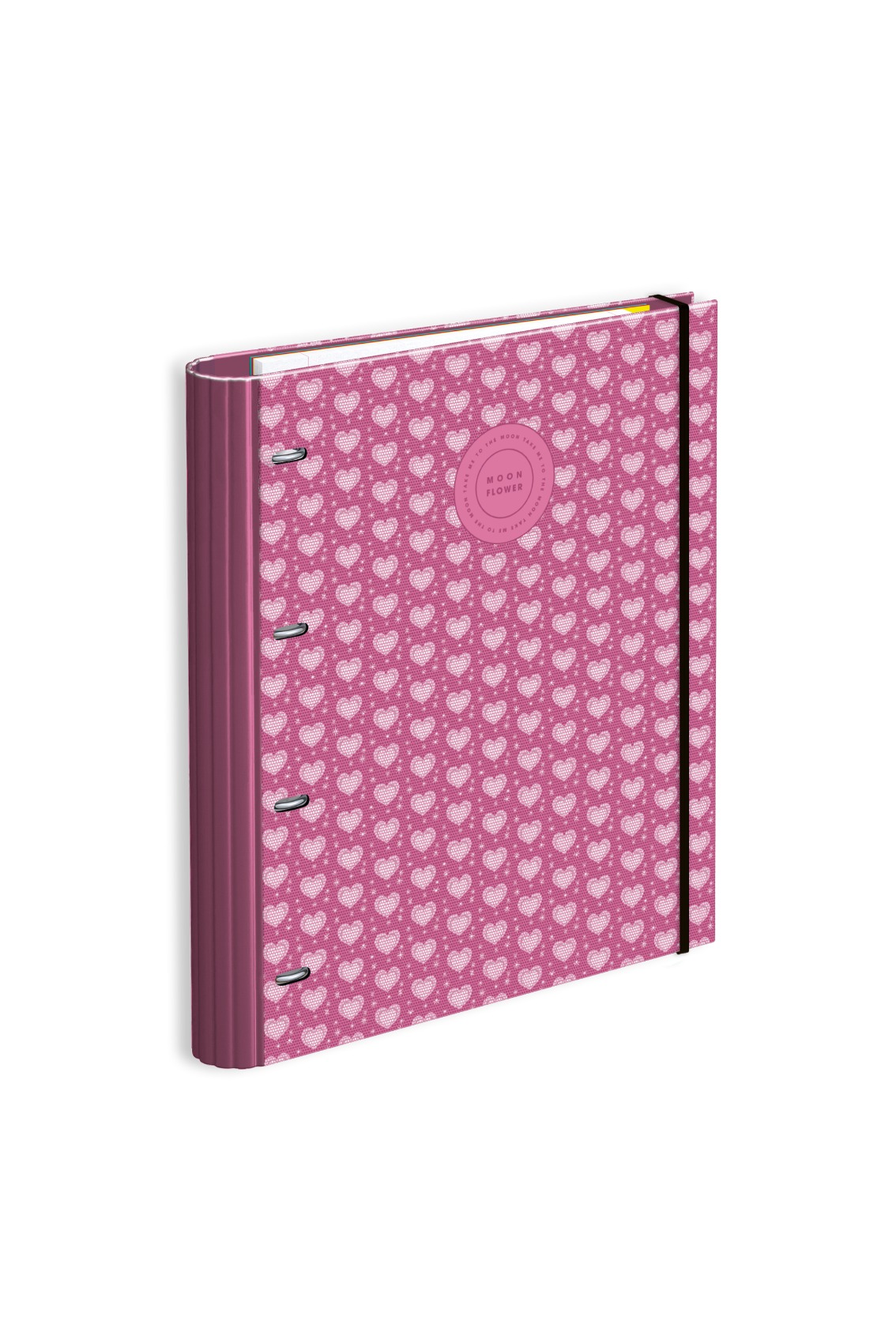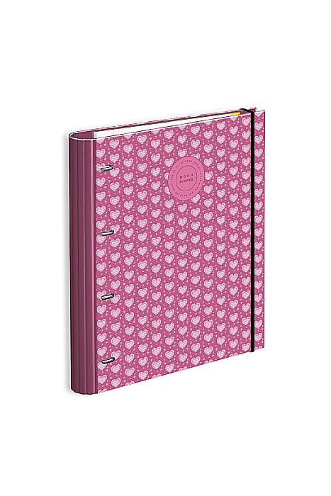 Caiet mecanic cu inele model Katy in dimensiune A4. Are inchidere elastica din cauciuc, si 4 inele D, 35 mm.