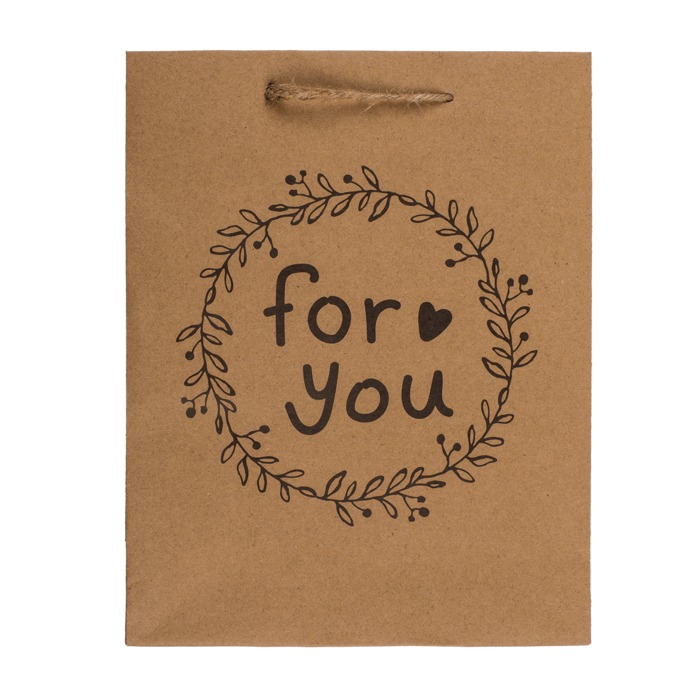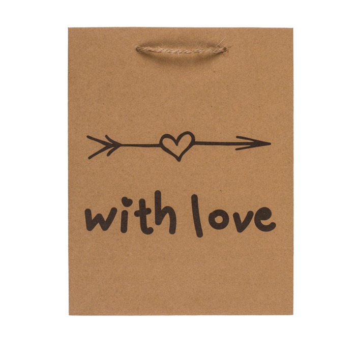 Sacoșa cadou Kraft Love, For You, Surprise, Congrats 180764 este alegerea perfectă pentru ambalarea cadourilor speciale și transmiterea unor mesaje de afecțiune și bunăvoință. Realizată din hârtie kraft rezistentă, această pungă cadou adaugă un element de rusticitate și eleganță în prezentările dvs.