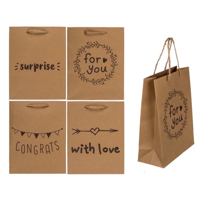 Etichete: Set de 12 bucăți, ambalare cadouri, Mesaje inspiraționale, Dimensiuni de 18x8x23cm, Rusticitate și eleganță, Asortate în 4 variante, Pungă de polietilenă, Accesorii pentru cadouri, sacosa cadou, hartie kraft