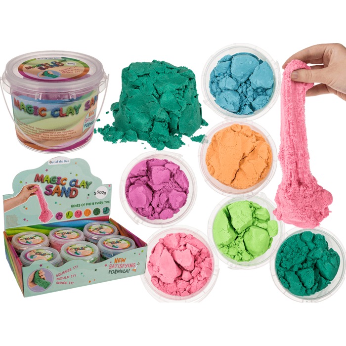Fiecare cutie conține 6 bucăți de nisip, fiecare într-o culoare diferită, facilitând organizarea și depozitarea. Cutia este concepută pentru a fi ușor de deschis și de utilizat, fiind perfectă pentru jocuri la domiciliu, la școală sau în timpul liber.