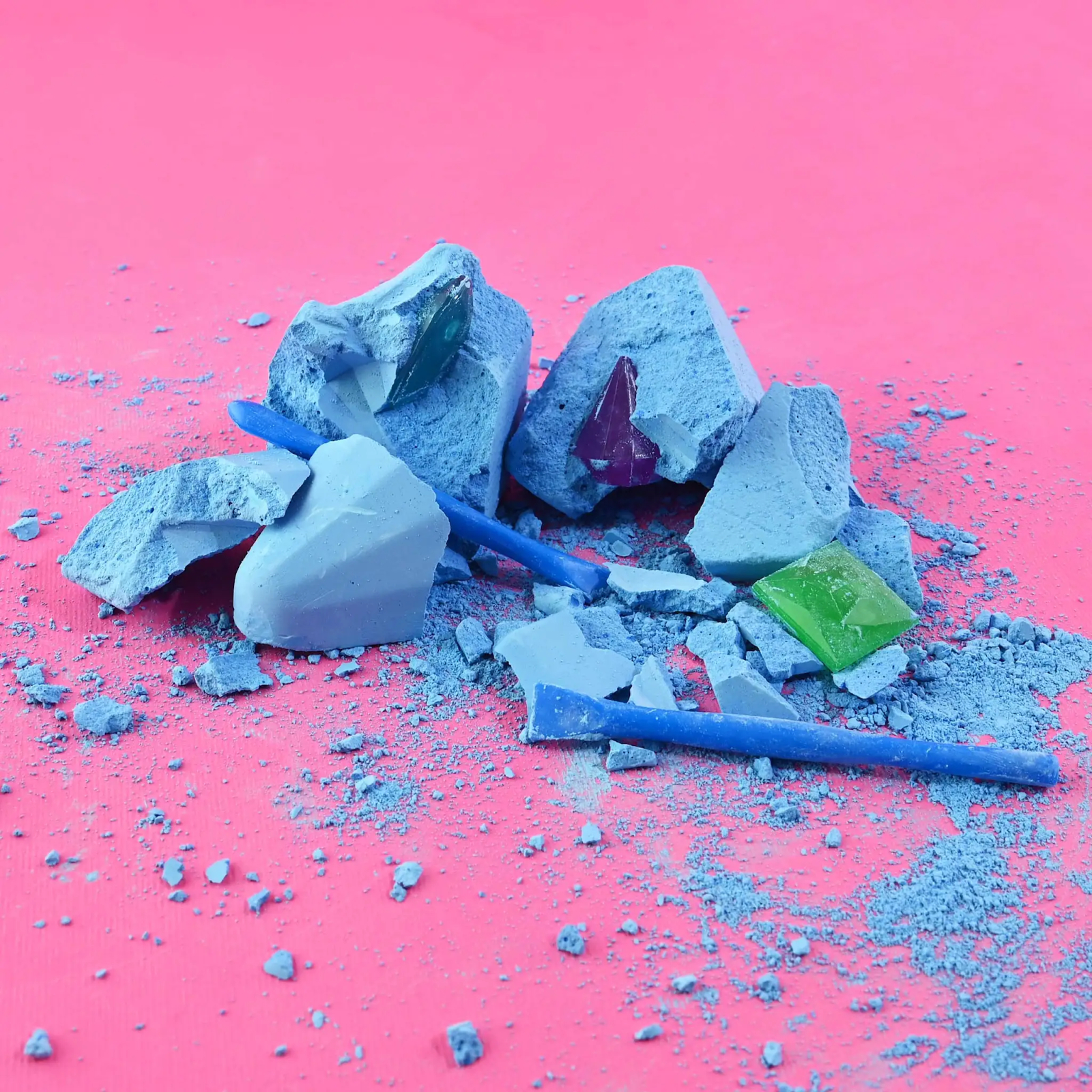 • Proces de Excavare: Jocul utilizează un bloc de ipsos special care poate fi mărunțit cu ajutorul instrumentului inclus, dezvăluind treptat piatra sclipitoare din interior.