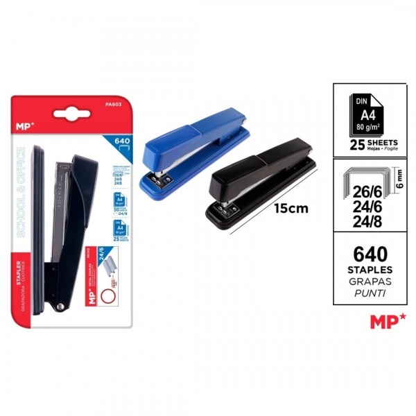 Capacitate maximă de capsare: 25 de coli. Încărcare cu capse: de sus. Capsare deschisă și închisă.