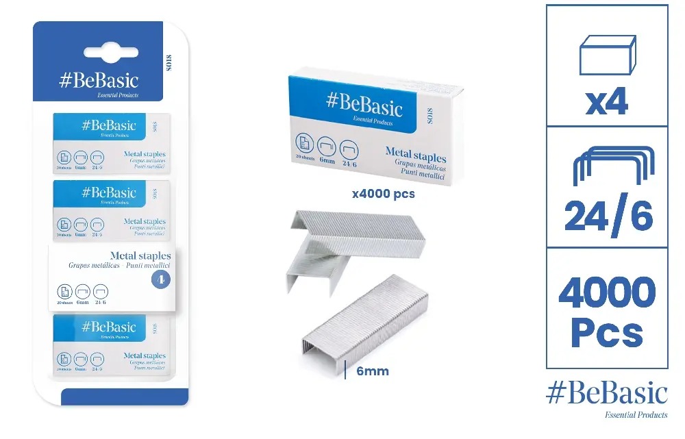 Capse BeBasic 24/6 Metal - 4000 Capse per Set pentru Eficiență Maximă