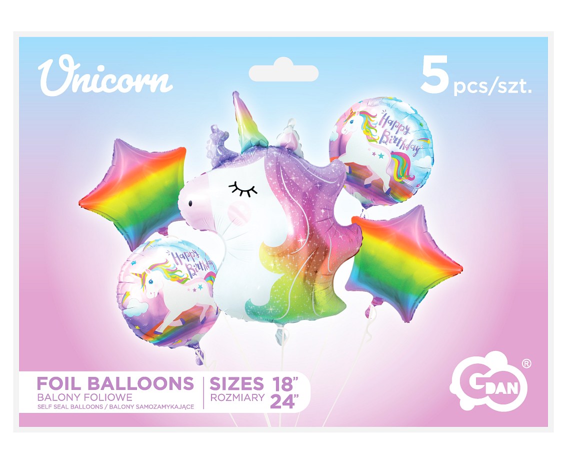 Balon Folie Aluminiu Set Unicorn, Happy Birthday, 5/Set Bz-Hjed