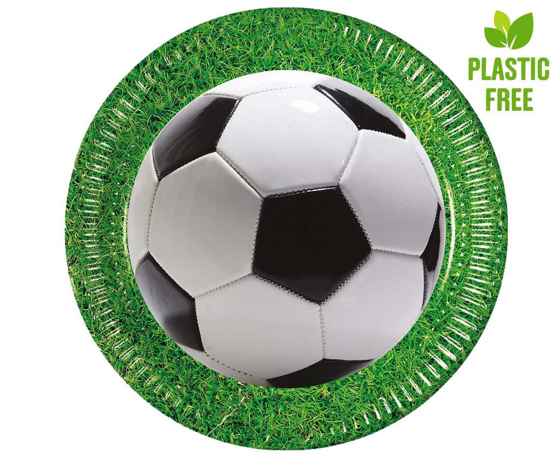 Copilul tău joacă fotbal? Sau poate că prietenii tăi vin la un meci? Farfuriile de hârtie cu imprimeu de fotbal vor fi grozave în ambele cazuri. Aceasta este vesela perfectă pentru fiecare fan al fotbalului.