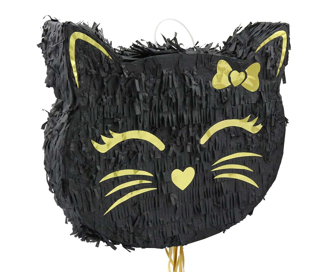 Cuvinte cheie: pinata party, black cat, inaltime, latime, grosime, culoare neagra, model, pisica neagra, piñata cu sfori, cantitate, producator, Godan