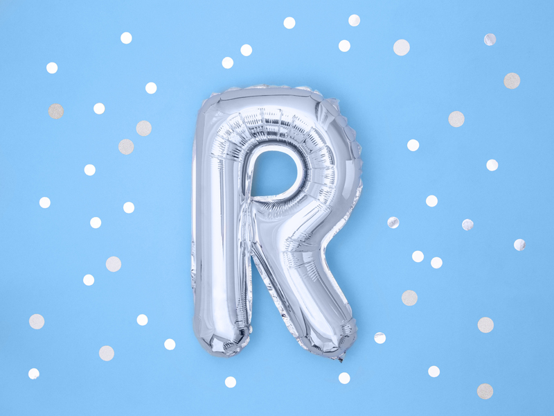 Metallic foil balloon Letter "R", silver, height approx. 35 cm (14").