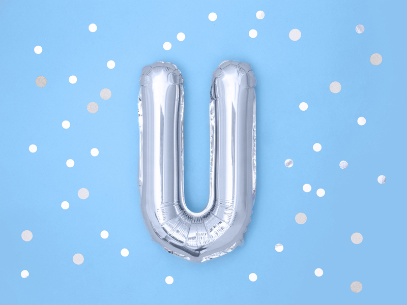 Metallic foil balloon Letter "U", silver, height approx. 35 cm (14").