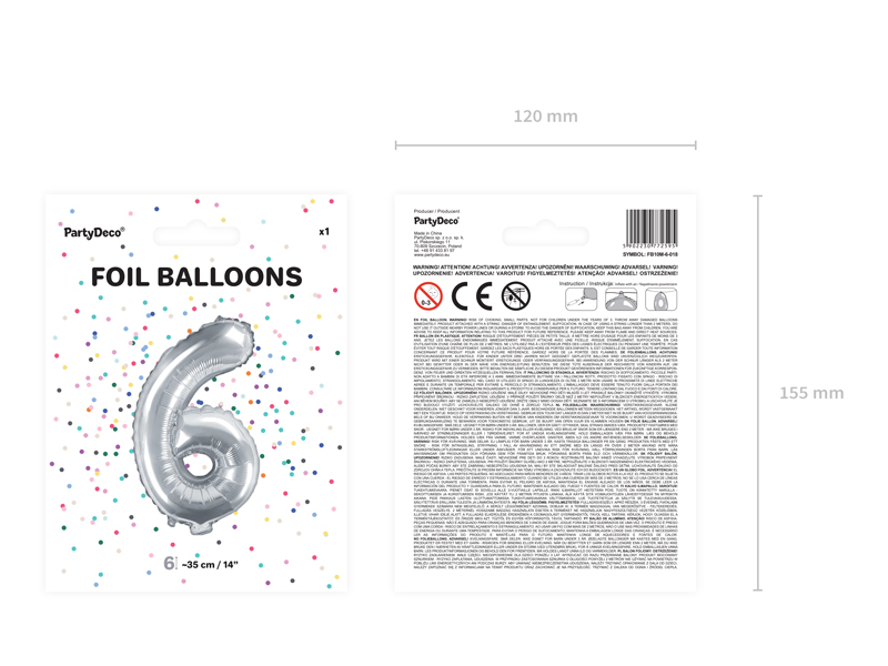 BALON FOLIE ALUMINIU NUMBER "6", 35CM, SILVER FB10M-6-018