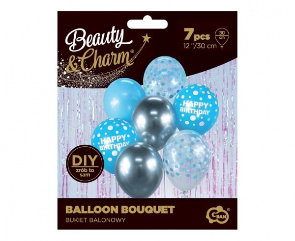 Baloane Balloon Bouquet B&C, 30cm, Happy Birthday, Silver And Blue 7/Set Bb-Snh7