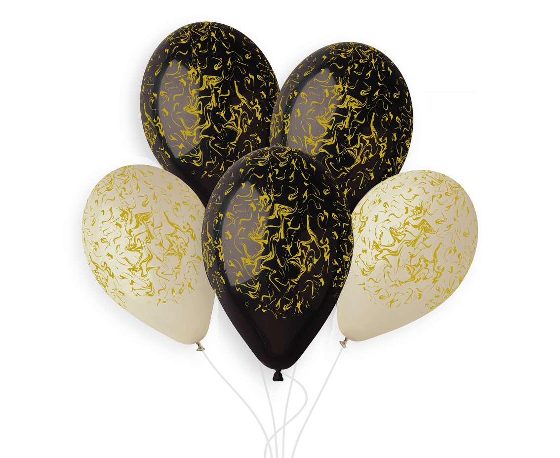 Baloane Black and Latte, 13 cm 5/Set GS120/MCL, Balony Marble, Negre și Latte