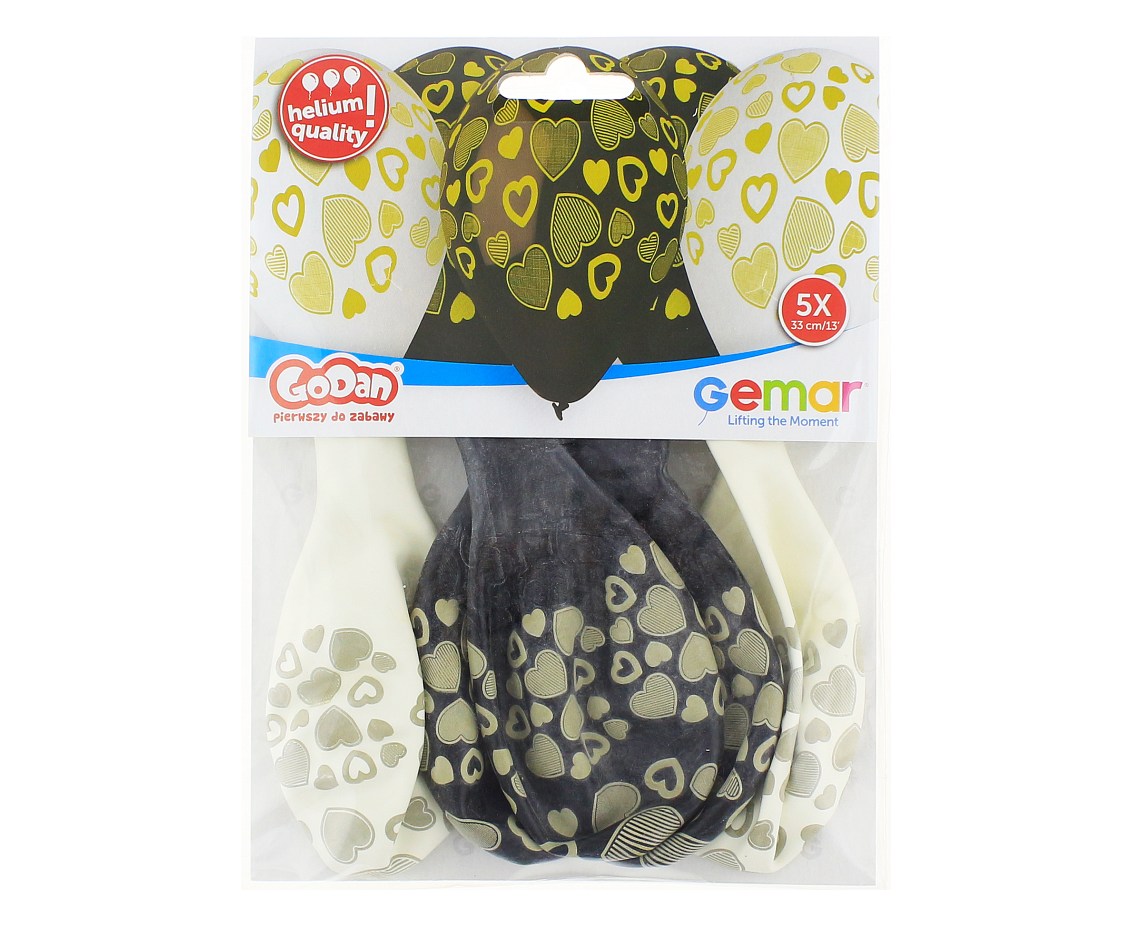Dimensiune in centimetri: aproximativ 33 cm Numar de bucati in pachet: 5 Culoare: alb-negru Amprentă: inimioare de aur