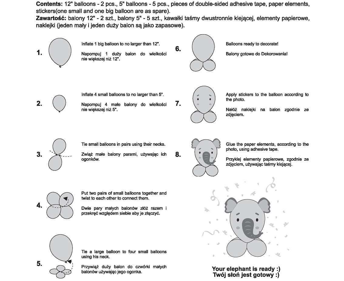 Vă prezentăm ultimul trend în domeniul decorării - un set de baloane cu ajutorul cărora veți crea rapid un elefant impresionant! Este o decorație indispensabilă pentru orice petrecere dedicată copiilor.