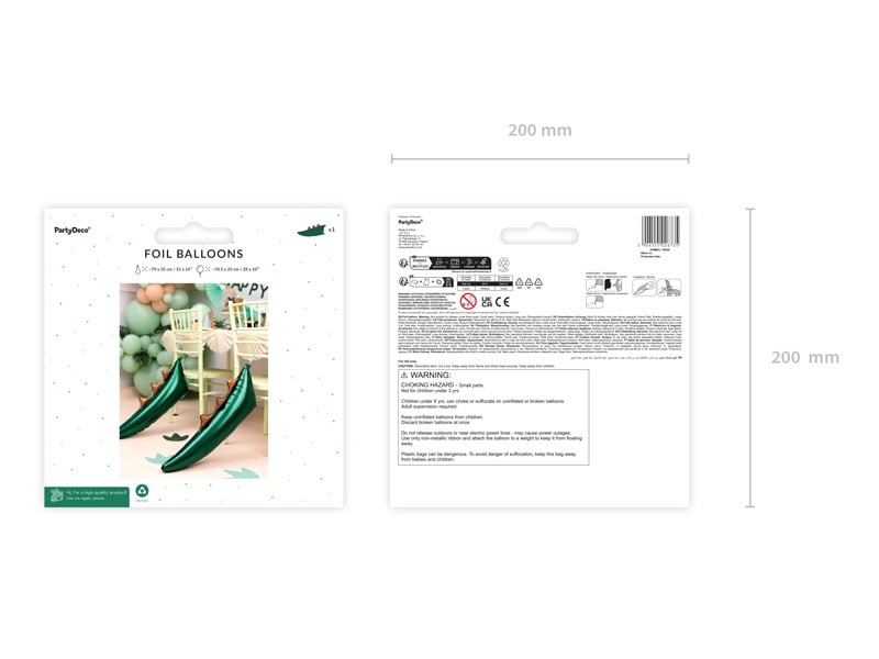 Cu dimensiunile de aproximativ 79 x 35 cm înainte de umflare și aproximativ 74,5 x 25 cm după umflare, această coadă de dinozaur va fi cu siguranță un punct de atracție în decorul evenimentului tău.