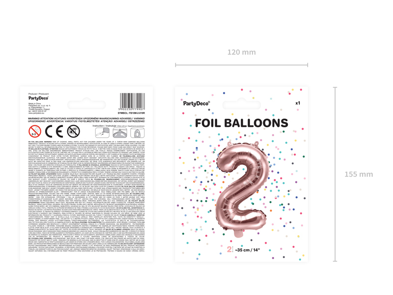 BALON FOLIE ALUMINIU NUMBER "2", 35CM, ROSE GOLD FB10M-2-019R