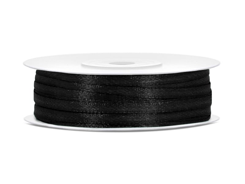 Satin Ribbon, black, width 3 millimeters, length 50 metres. 1 pkt / 1 pc. EAN: 5902230713314 symbol: TS3-010
