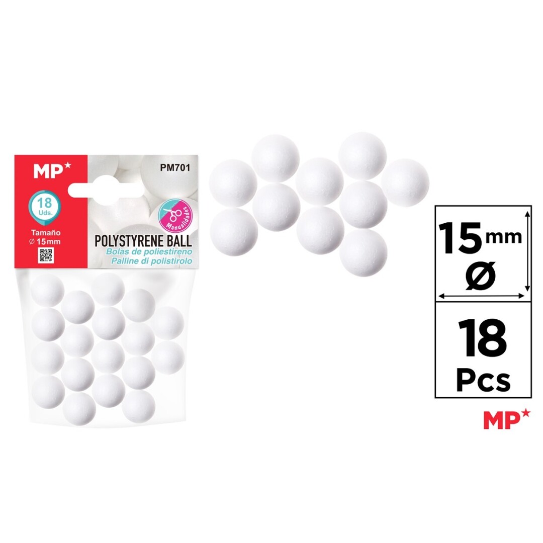 Bila albă din polistiren pentru Crafturi. Poate fi vopsita cu orice tip de vopsea. Dimensiune: 15 mm. set de 18 unități.