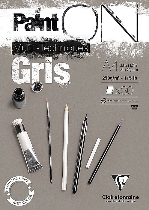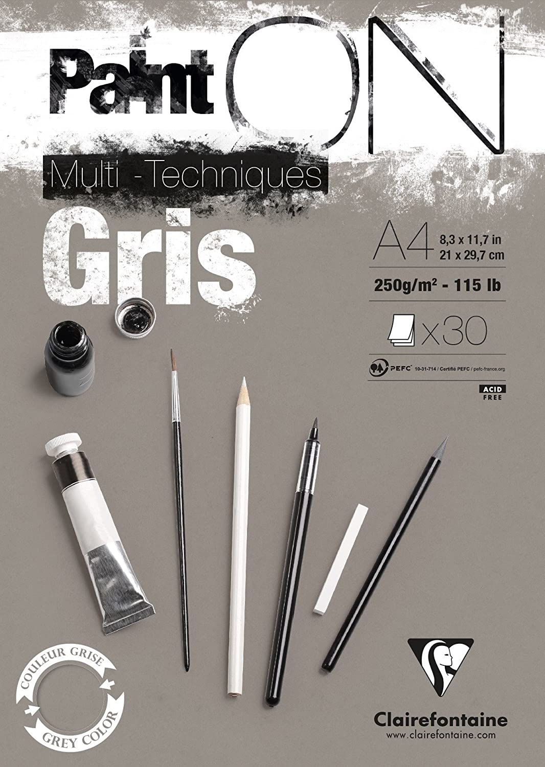 BLOC DESEN GRIS A4 250GR PAINT`ON MULTI-TECHNIQUE CLAIREFONTAINE 975809C