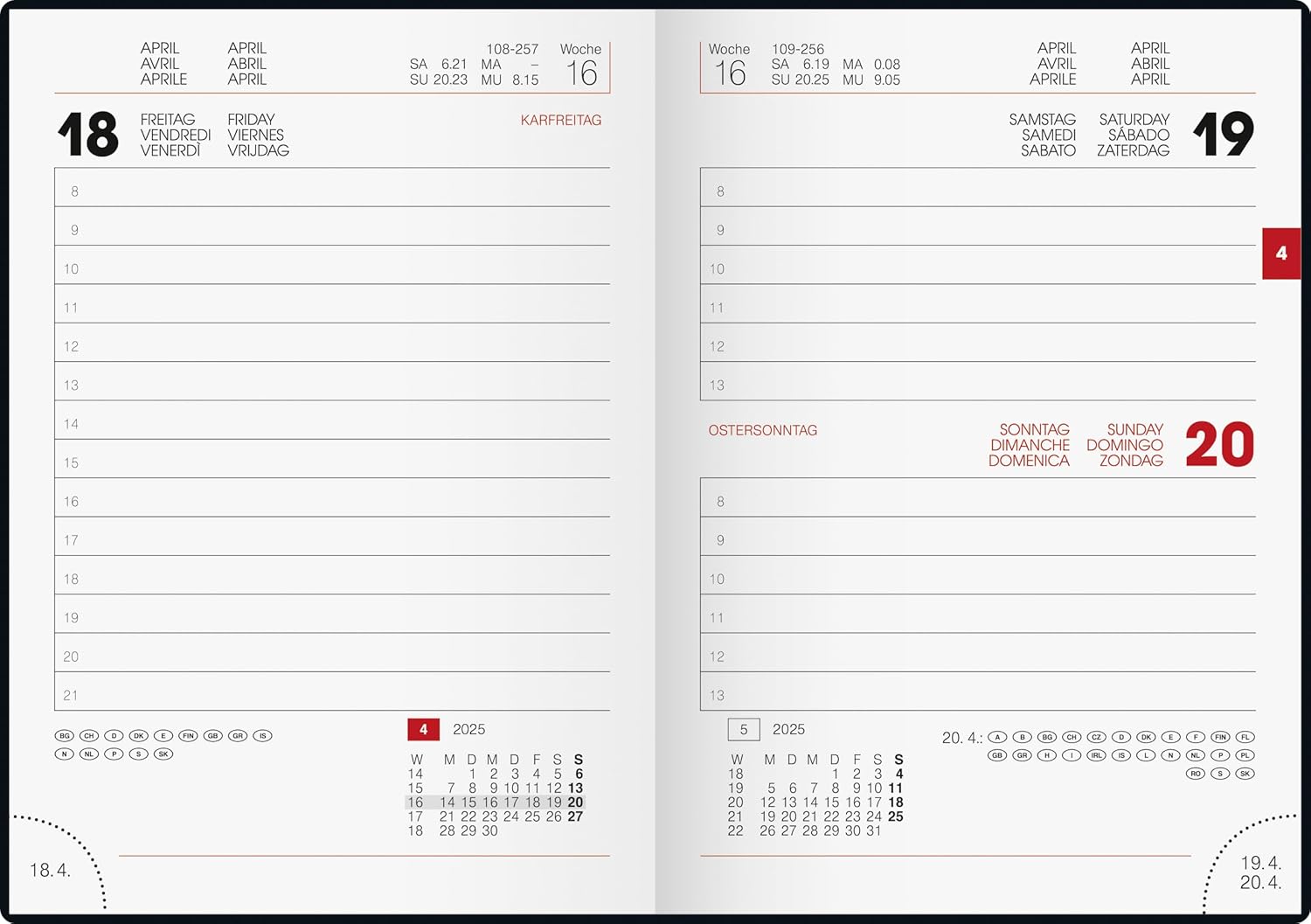 Etichete: culoare argintie, agende datate, Anul 2025, agende datate 2025, Dimensiune A6, Agenda zilnică Artistico, Structură 1 pagină = 1 zi, Împărțire orară de 8 - 21 ore, 368 pagini, Notițe blanko perforate, 6 limbi disponibile, Informații utile
