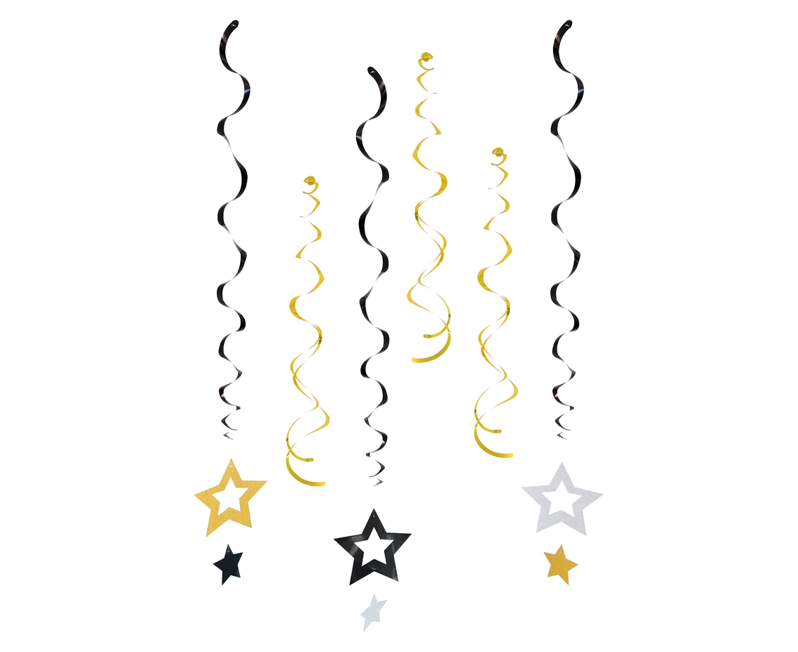 DECORATIUNI SUSPENDATE DIN HARTIE B&C STARS, GLITTER, 6/SET PF-DWGB