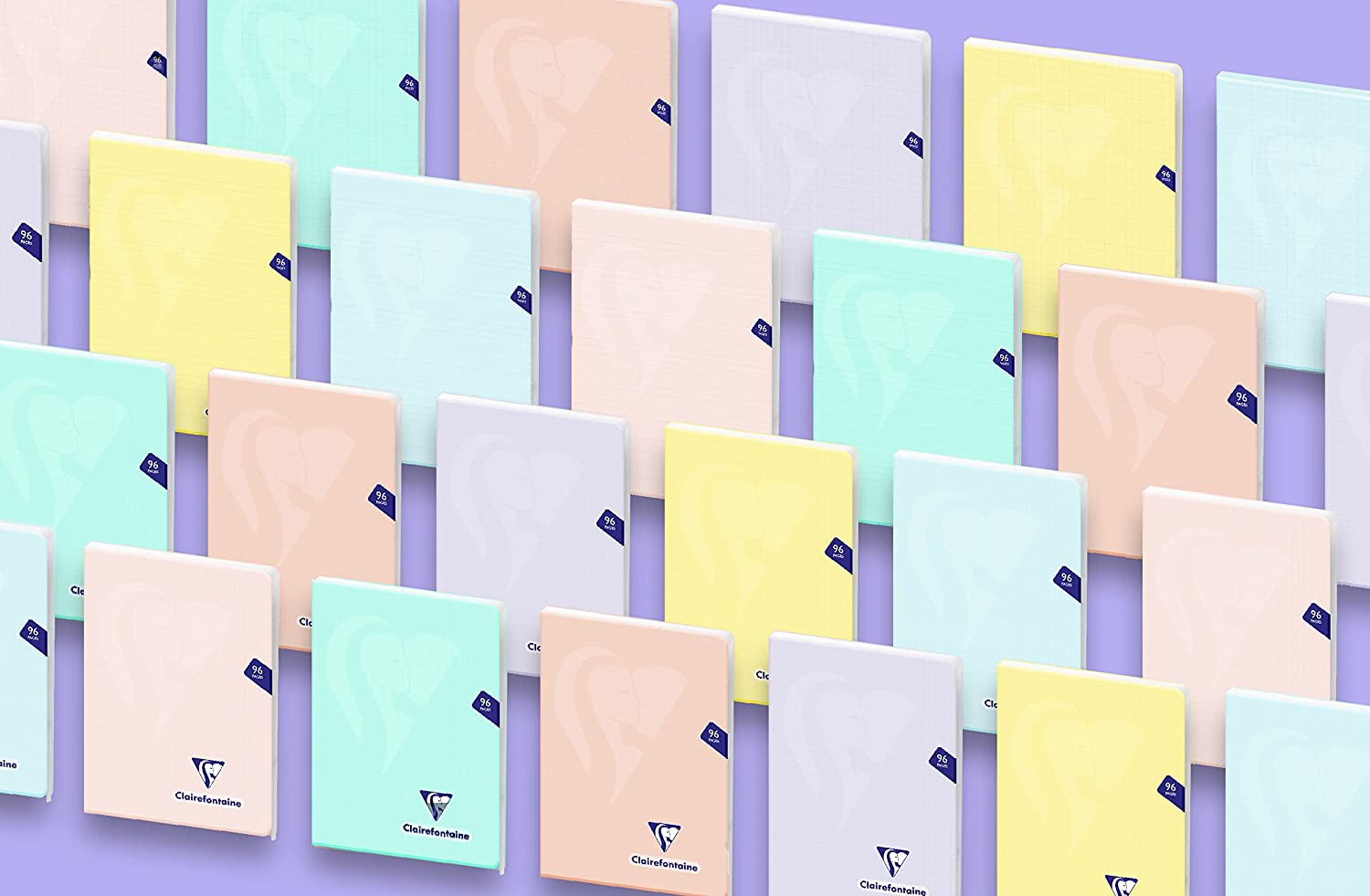 Clairefontaine Mimesys 308682C - Caiet de exerciții DIN A5 14,8 x 21 cm 48 coli 90 g , liniatura: patratele, Ideal pentru școală Copertă impermeabilă din polipropilenă Asortate pastel