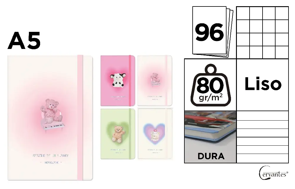 Notes IPB A5 Cervantes cu elastic PB829-82 – pentru notițe elegante și organizate în stil jucăuș!