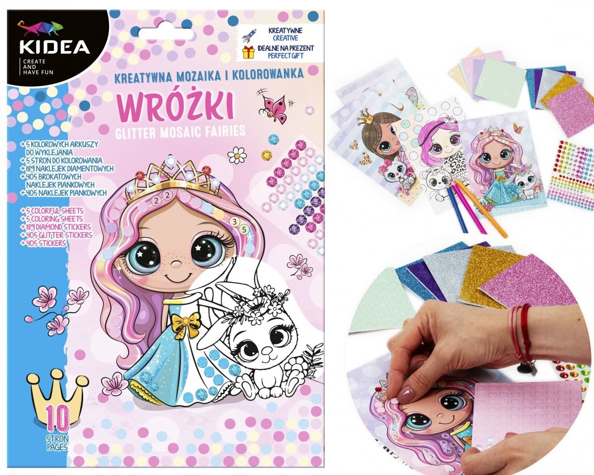 Transformă timpul de joacă într-o aventură creativă cu Cartea de Colorat cu Stickere și Diamante Zâne de la KIDEA. Imaginația copilului tău va prinde viață prin crearea unor opere de artă unice și strălucitoare!