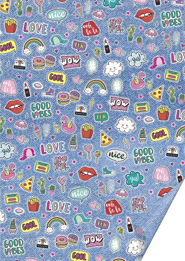 Imprimat cu diverse motive. Perfect ca fundal sau pentru a împacheta suprafețe mai mari (de exemplu, cutii). Hârtia este 100% reciclată.