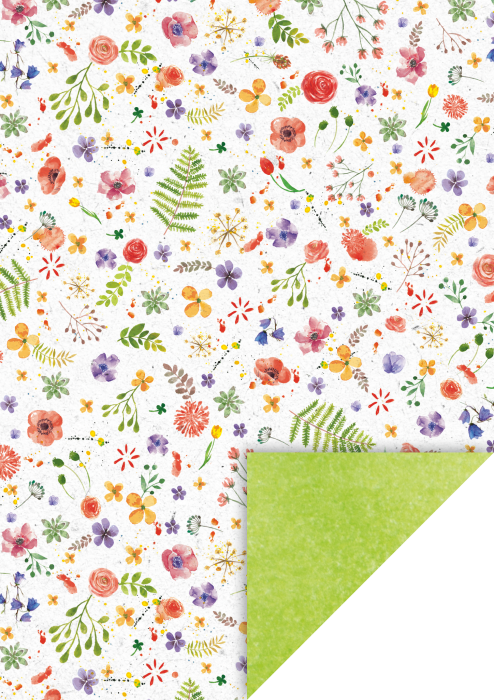 Design Reversibil: Fața florală bogată este completată perfect de verso-ul cu efect de acuarelă verde, permițând combinații creative fără a necesita materiale adiționale.