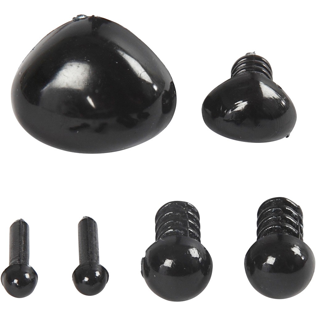Eyes and noses, D: 3+6 mm, size 8x6+14x11 mm, black, 20sets