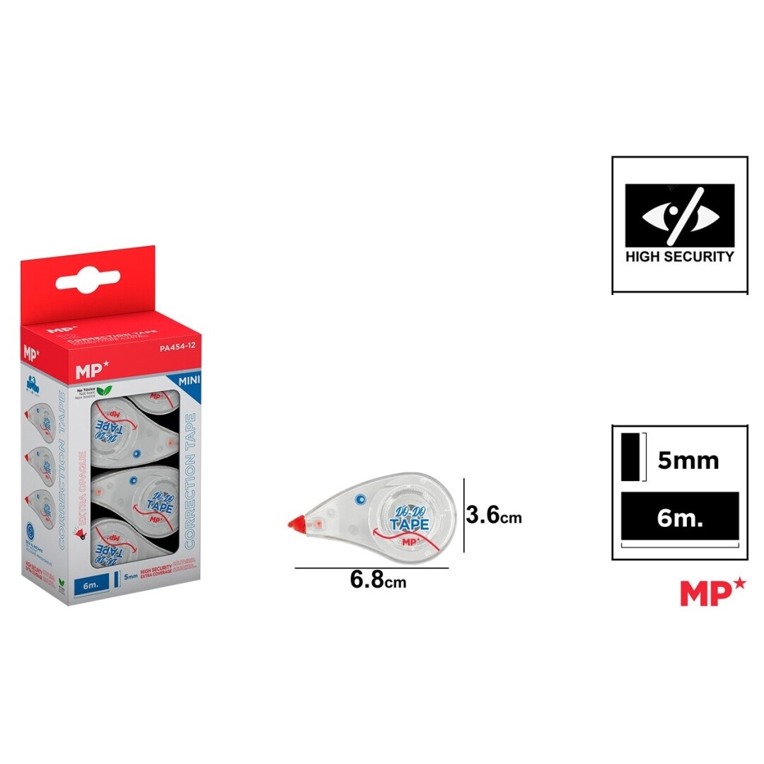 Bandă corectoare opaca, de înaltă securitate pentru corecții confidențiale. Permite scrierea pe corectura instantaneu. Corecție frontală. Non-toxic.Alunecă lin pe hârtie, fără a se bloca.Lățimea benzii: 5mm. Lungime: 6m. Pretul este pe bucata