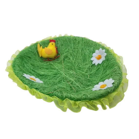 Transformă atmosfera casei tale și adu spiritul primăverii la interior cu acest coș decorativ rotund pentru Paște, disponibil pe ipb.ro. Cu un diametru generos de 24 cm și o înălțime de 7 cm, acest aranjament gata pregătit îmbină armonios elemente naturale și simboluri festive. Coșul include deja sisalul moale și decorațiunile tematice, oferind o soluție estetică instantanee pentru a pune în valoare ouăle vopsite sau pentru a servi drept cadou memorabil. Este piesa centrală de care ai nevoie pentru o masă festivă plină de căldură și stil.
