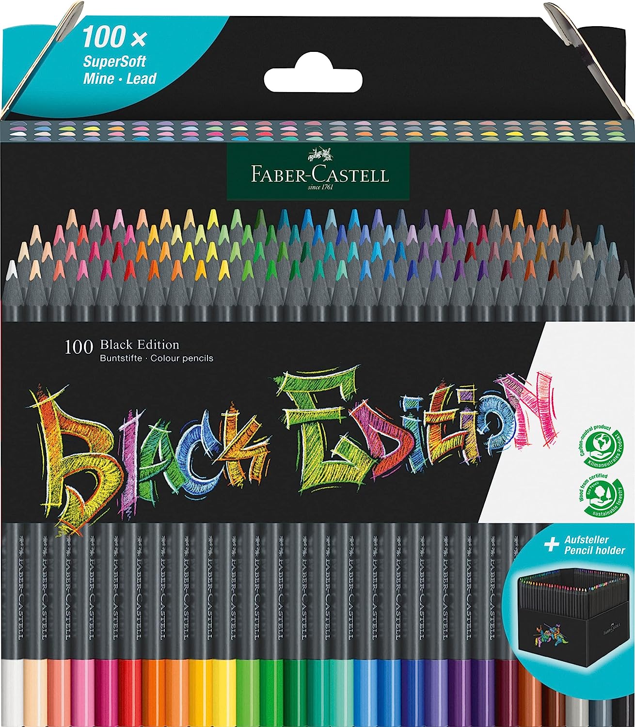 Setul Black Edition Faber Castell contine 100 de creioane colorate, ecologice.