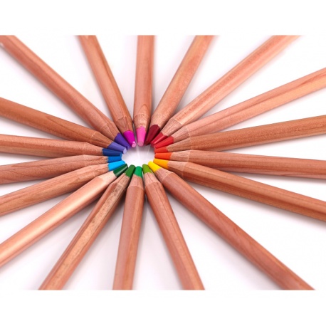 Culori din lemn de cedru de calitate superioară certificate de FSC. Mina este moale, ideala pentru amestecarea culorilor și pentru crearea de tranziții de culoare netedă. Kitul conține 12 coloranți într-un recipient metalic.