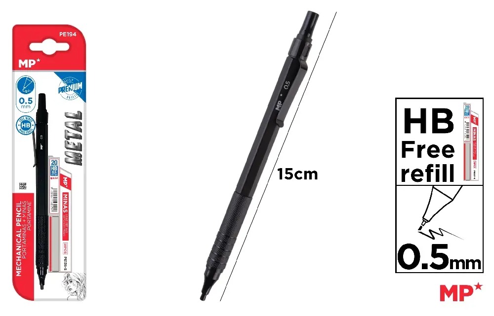 Acest creion mecanic premium de 0.5 mm este conceput pentru cei care caută eleganță și performanță. Realizat din metal de înaltă calitate, oferă un aspect sofisticat și o durabilitate superioară. Ideal pentru utilizare profesională sau personală, creionul vine cu mină inclusă, pregătit pentru a oferi o experiență de scriere confortabilă și precisă.