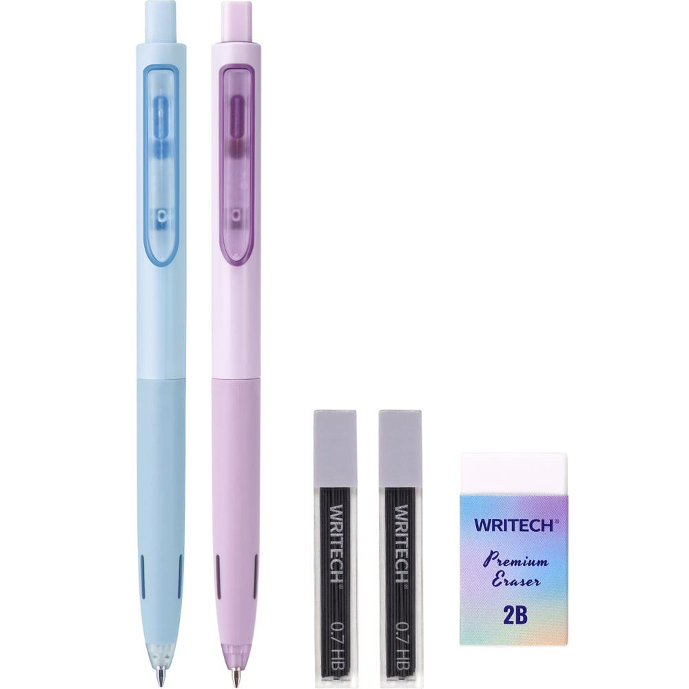 Setul Space Up 5154 Writech include două creioane mecanice tehnice cu mina de 0,5 mm și o radieră, fiind ideal pentru desen tehnic și scris precis, având un design inovator și mâner cauciucat pentru confort maxim.