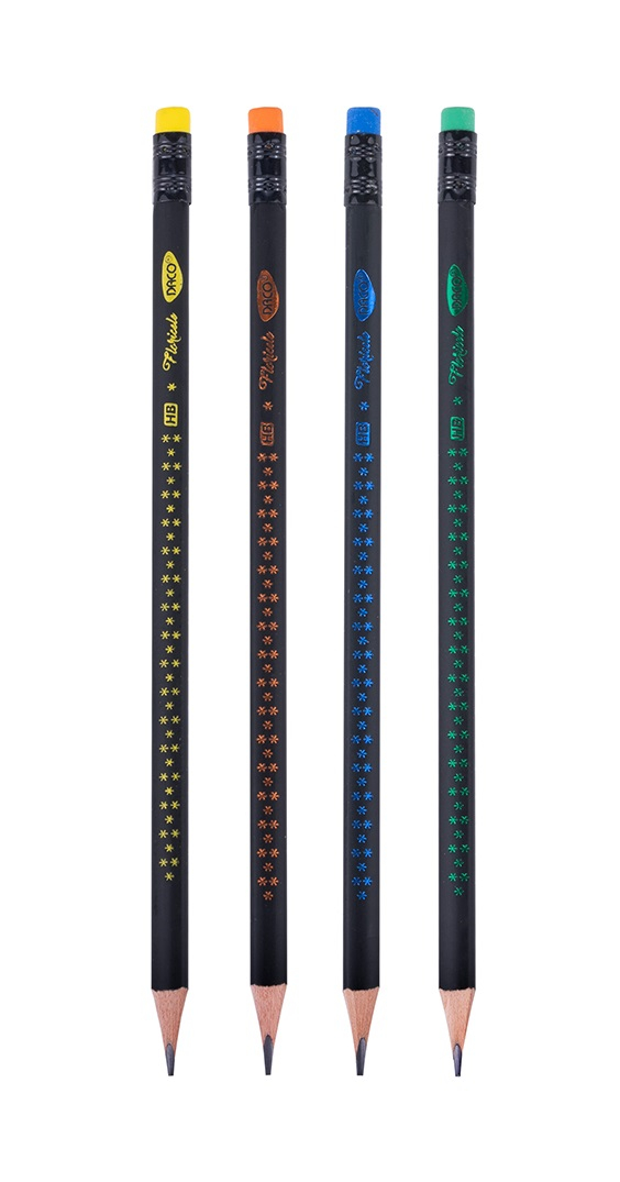 ✏️ Creion triunghiular din lemn negru fin, cu radieră atașată pentru corecturi rapide