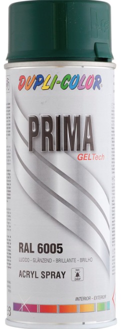 Noile vopsele spray DUPLI-COLOR PRIMA sunt vopsele acrilice ce înglobează o tehnologie GEL specială. Pot fi utilizate la interior și la exterior, au un aspect deosebit, o strălucire extraordinară și o rezistență a culorilor datorită celor mai buni pigmenți de vopsea și a celor mai bune materii prime folosite la realizarea lor. În acest mod a fost obținută o impresionantă paletă de culori în sortimentul DUPLI-COLOR PRIMA.
