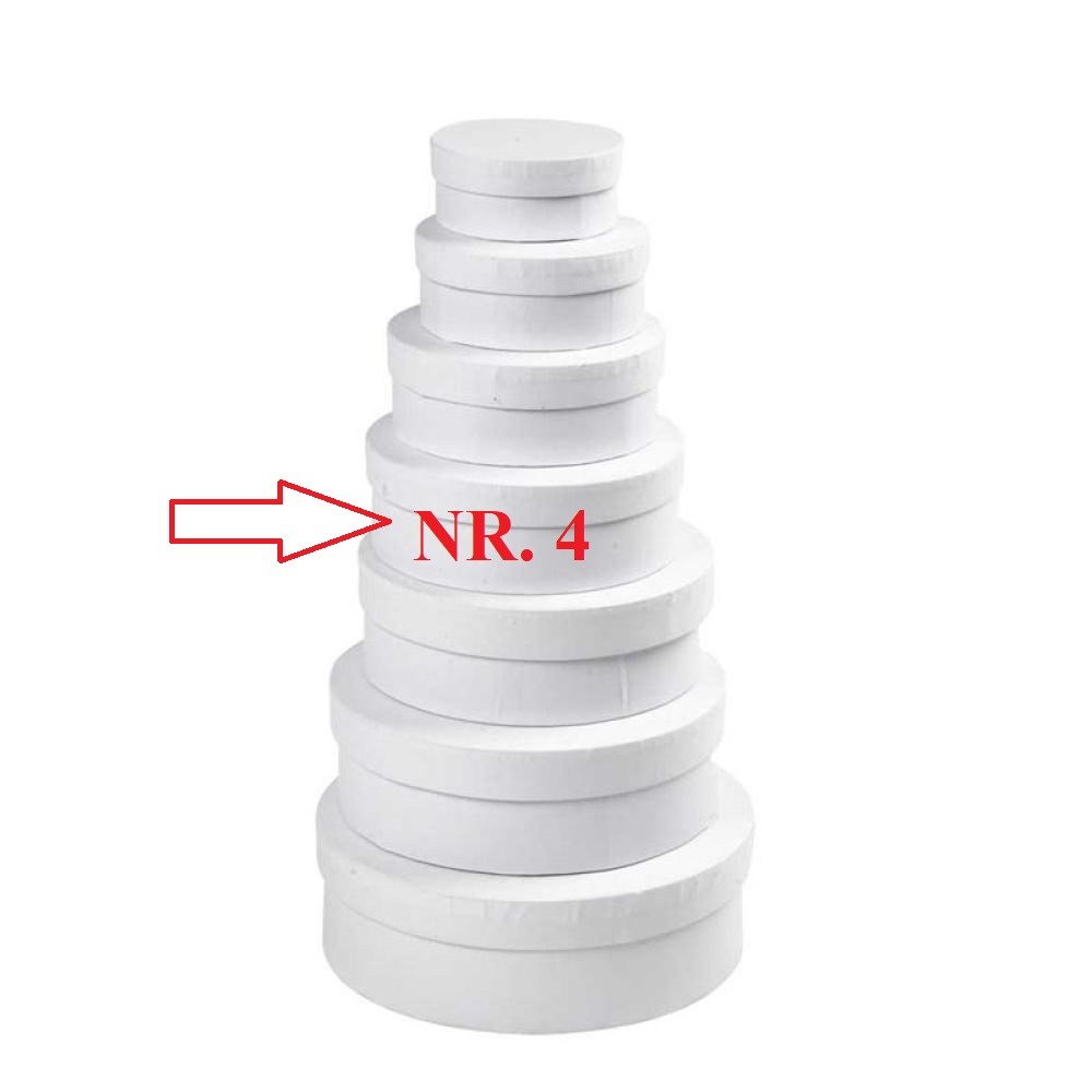 📦 CUTIE ALBĂ CARTON ROTUNDĂ – NR. 4, D: 14,5 x H: 5,5 CM (26421) ⭐