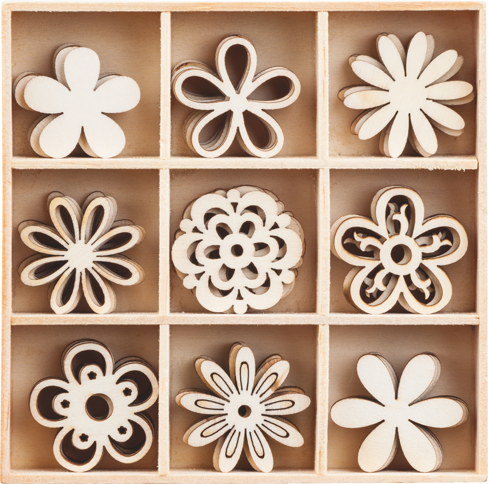 Acest set de decorațiuni din lemn de la KNORR prandell este o colecție încântătoare de forme florale, perfectă pentru a adăuga un element delicat și natural proiectelor dumneavoastră de artizanat și decor. Setul include 9 modele variate de flori, fiind ideal pentru scrapbooking, card making și decorațiuni de primăvară sau vară. Elementele sunt din placaj de lemn (plywood) în culoarea naturală.