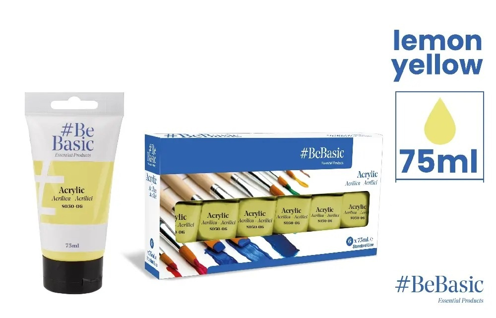 Culori acrilice BeBasic Satin 75ML, galben lămâie S050-06 – o nuanță vibrantă și energizantă, perfectă pentru a aduce luminozitate și vitalitate creațiilor tale artistice!