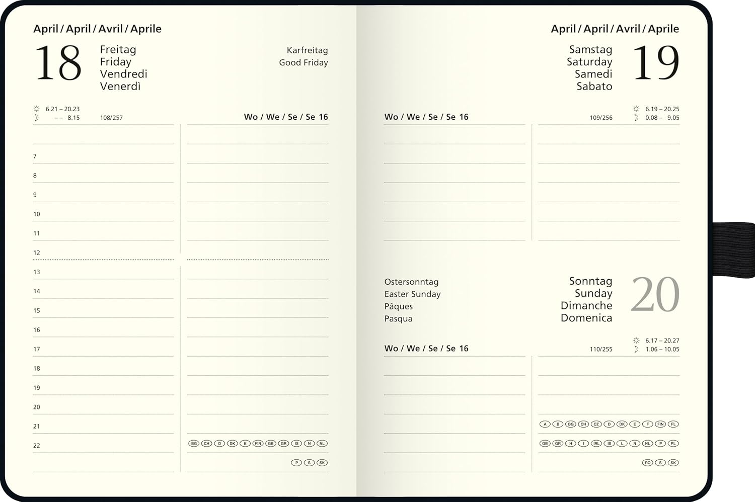 Etichete: agende datate, buzunar interior, Anul 2025, agende datate 2025, Dimensiune A6, Culoare Baladek Negru, Structură 1 pagină = 1 zi, Notițe blanko perforate, Agenda zilnică Kompagnon, Împărțire orară de 7 - 22 ore, 352 pagini, Hârtie rezistentă la cerneală