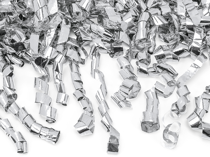 Confetti cannon with streamers, silver, 60cm Confetti cannon shooting out long silver metallic streamers, length 60 cm. 1 pkt / 1 pc.