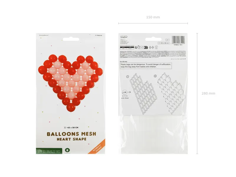 ✨ Această plasă de baloane în formă de inimă poate susține până la 38 de baloane cu diametrul de 8-10 cm, creând un efect vizual impresionant și festiv.