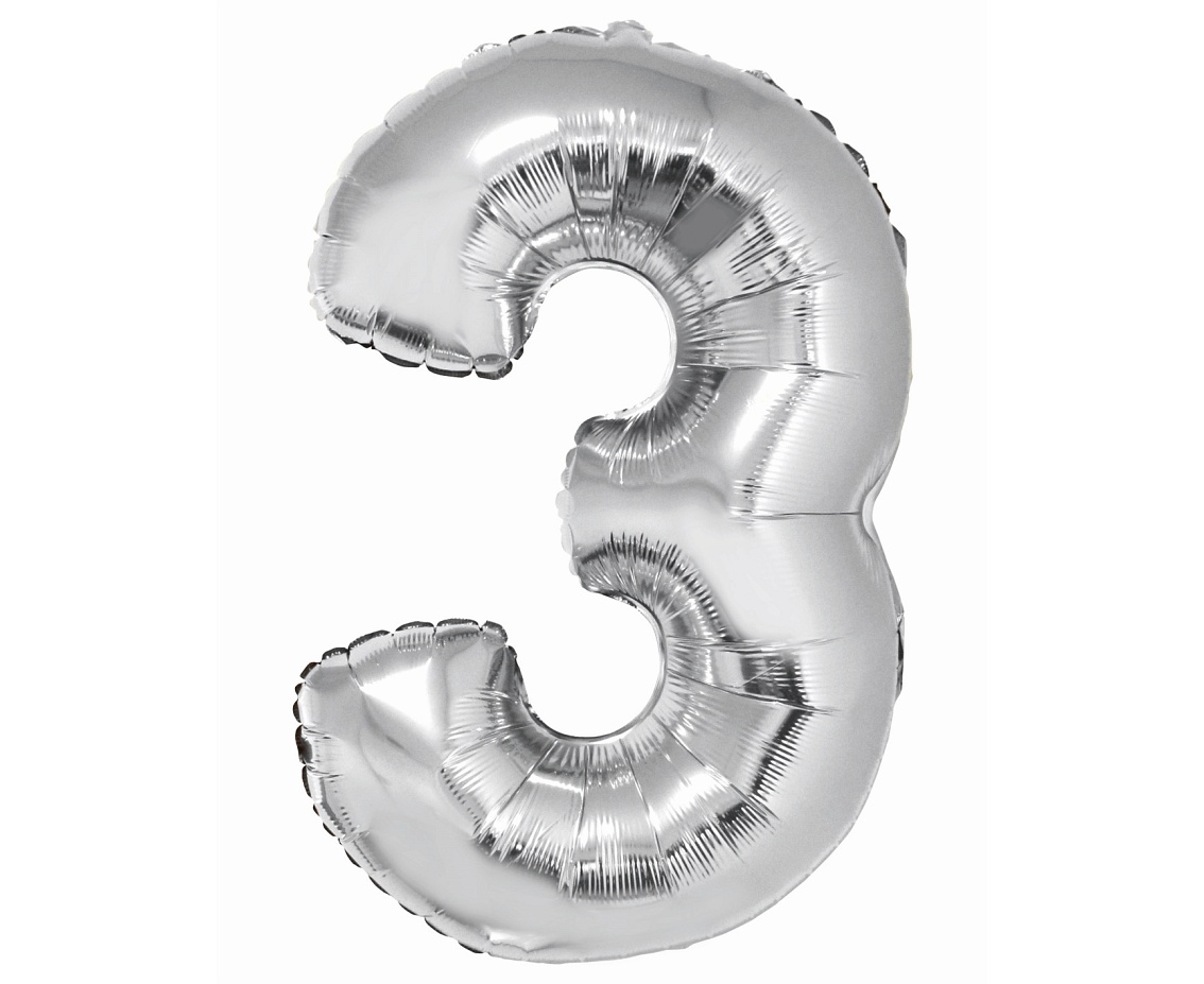 Balon Folie Aluminiu Smart, Digit 3, 76cm, Silver Ch-Ssr3