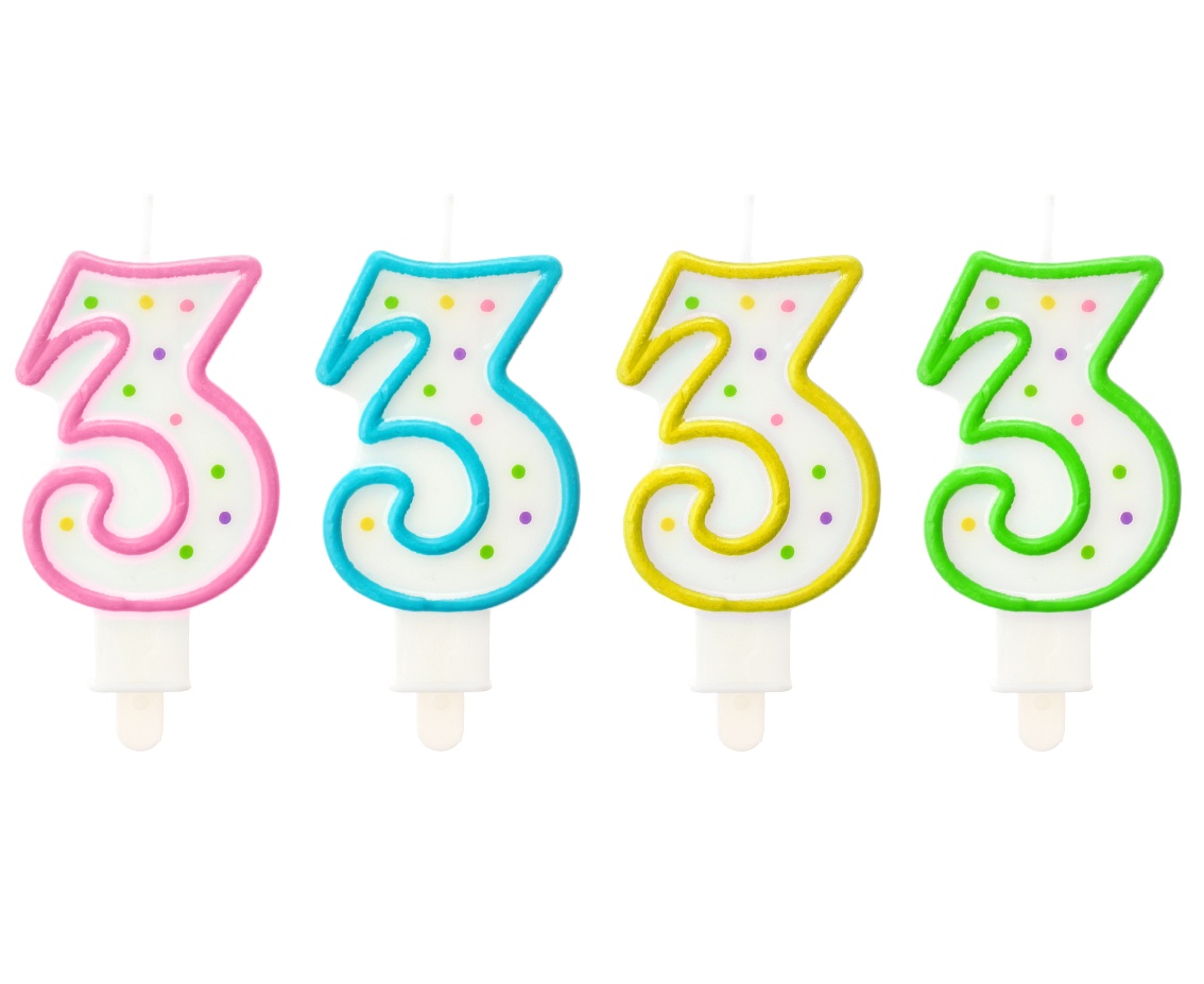 Lumanare Tort Number 3, With Dots, 7.5cm Pf-Sck3